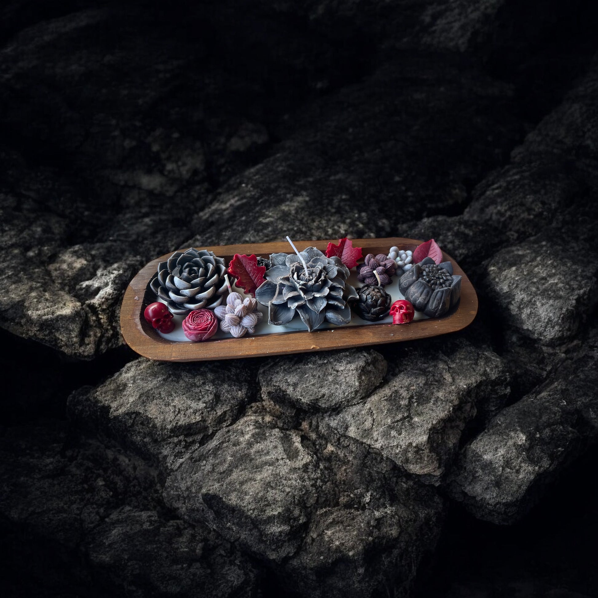 Crafted with expertise, this 12in Gothic Succulent wooden dough bowl features a hand-poured coconut soy wax candle, adding a hint of floral beauty to any space.